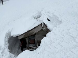 雪を掘ってお参りできるようになっていて、お参りしている人もいました