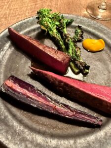 蝦夷鹿のお肉は臭みがまったくなく、やわらかくて美味しかったです。こうしていただくと、鹿肉も本当に美味しいのだなと感じました。添えられていたお野菜も、野菜そのものの旨みがしっかりしていて美味しかったです。