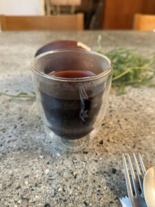 いつもはジュースとか飲まないけど、ザクロジュース、しかも無加糖って珍しいと思って注文