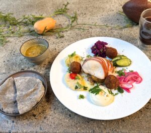 ファラフェルもお豆からできてるし、お野菜たっぷり