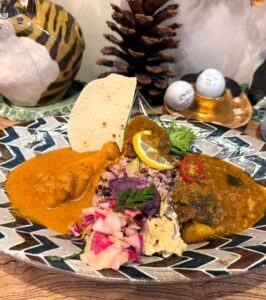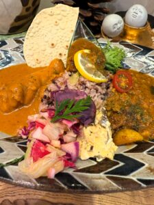 熟成鶏のチキンカレーと吟醸豚さんの粗挽きキーマカレーの合いがけカレー