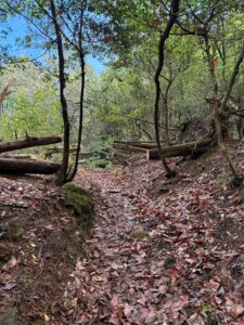 マイナールートなので整備されず落ち葉が詰まった道を歩きます