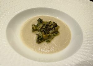 黒アワビのソテーと菊芋のヴルーテ 黒トリュフ