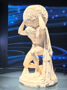 ギリシャ神話の巨神アトラスが天球儀を肩に担ぐ姿を表現している紀元前2世紀の大理石の彫刻