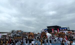 しばらく当日予約をゲットできないか頑張ってみましたが、難しそうなのでだんじりを近くで見物