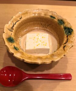 冬らしく、上には柚子が添えられていました。こちらのごま豆腐は、時々無性に食べたくなる一品で、久しぶりにいただけて本当に嬉しかったです。