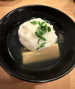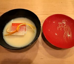 「代々」を意味する縁起の良い食材で、白味噌の味わいが本当においしく、まさにお正月のお雑煮をいただいた、という気持ちになりました。