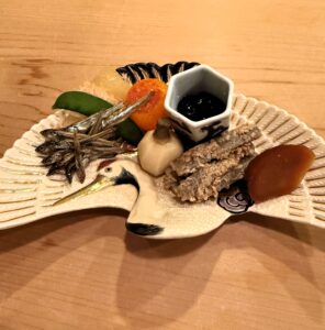 特に印象的だったのは、苦味がまったくなく、初めていただいたときに感動したごまめです。また、金柑の中に入ったいくらも驚くほどおいしく、味付けが控えめで、金柑の甘さとよく合っていました。味を入れすぎない加減が難しいとおっしゃっていましたが、本当に絶妙でした。この時期に、ここでいただけてよかったと思える一品でした。