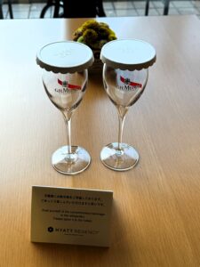 部屋に入ると、シャンパンボトルとお菓子が用意されていて、思わず驚きました。