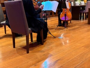 夕方からは生演奏があり、私たちの時間帯は管弦楽のカルテットを聴くことができました。