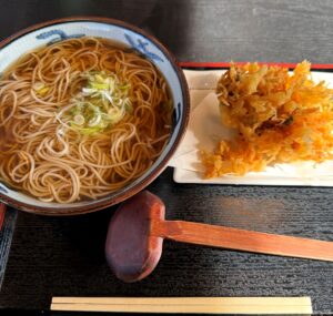 ここではかき揚げそばを注文しました。かき揚げはサクサクで、そばは細くツルツルとしていて、とても美味しかったです。