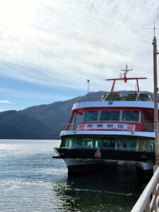 湖尻から箱根園へはバスも1時間に数本運行しているとのことでしたが、ちょうど良いタイミングで船が出る時間だったため、今回はバスではなく船で向かうことにしました。