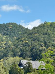 藤が咲いているのか山には所々淡い色が浮かんでいました