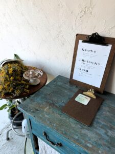 この日も、ミモザの花束と一緒にメニュー表が飾られていました。