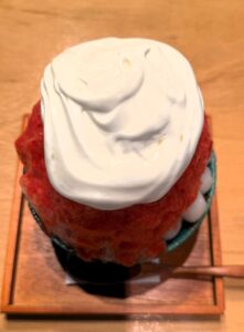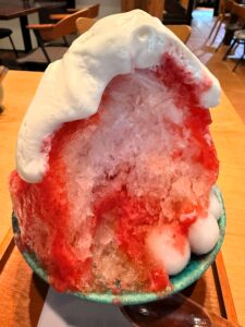 かき氷は、エスプーマが乗ったかき氷が名物のよう