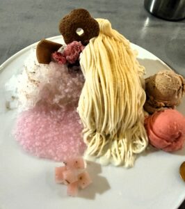 入口で予約名を伝えると、少し待ってから2階の会場へ案内されます。今回用意されていたのは、かき氷とジェラートを組み合わせた特別なデザート。イベント名も含めて、春らしいわくわく感がありました。
