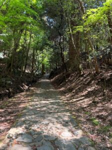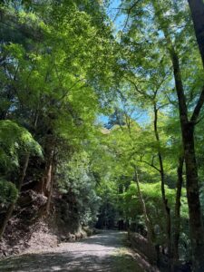 妙見宮の石段を下りて、再び春日山原始林の林道に戻ります