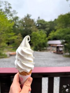 ソフトクリームを食べている間に雨がふりだしました