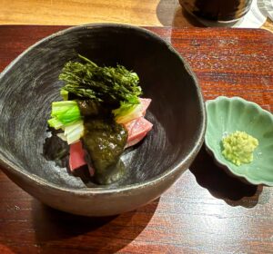 イカの甘みとからすみの塩気、生ウドの爽やかな香りがよく合っていました。