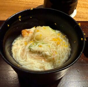 菜の花、数の子、百合根が入り、冬から春へ向かう季節を感じる一皿でした。