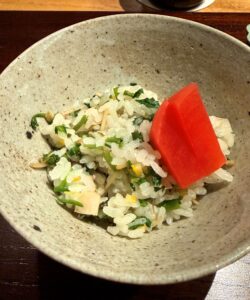 イカの甘みとからすみの塩気、生ウドの爽やかな香りがよく合っていました。
