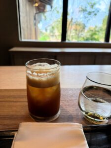 敷地で採れたものだそうですが、癖は強くなく、体がじんわり温まりました。飲み物は薬膳エールを注文。13種類の薬膳が入っているそうで、深みのある味わいでした。甘さに寄りすぎず、食事の邪魔をしないのもよかったです。水は注文しなくても出していただけたのもありがたかったです。