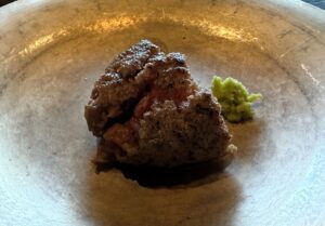 叩いた鮪と椎茸を合わせた一皿で、シンプルなのに印象に残る美味しさでした。