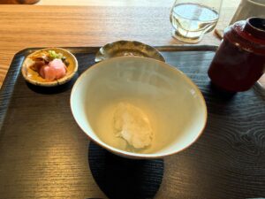 やさしい茶碗蒸しのような印象で、新若芽はとろとろとなめらか。刻まれた蛤も美味しくて、最初の一皿からほっとする味でした。