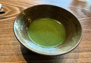 使われていたのは「どんか豆」で、桜の葉を使わない桜餅とのこと。お薄と一緒にいただきました。ふわっと溶けるようなお菓子で、不思議な感覚でした。