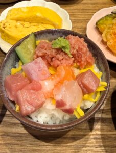 このあたりは若い人向けの丼ものや流行のお店も多いエリアですが、こちらはさまざまな食材を少しずつ楽しめる内容で、大人の方にもおすすめできるお店だと思いました。