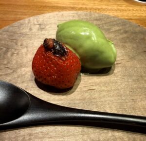 デザートは1月と同じく、焼きイチゴと抹茶アイスクリームでした