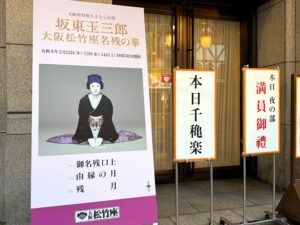 口上の中では、歌舞伎に対する思いや、これからの劇場文化に対する危機感のようなものも伝わってきました。大阪松竹座は、長く道頓堀で演劇や歌舞伎を上演してきた劇場です。閉館後も大阪での歌舞伎などの興行は別の劇場やホールで継続される予定とされていますが、やはり「道頓堀に常設の歌舞伎の舞台がなくなる」ということの重みは大きいと思います。大阪松竹座は、松竹の公式サイトでも103年の歴史を持つ劇場と紹介されており、その節目にこうした舞台が行われたことの意味をしみじみ感じました。