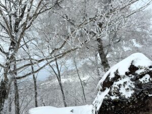 音もしないし、雪が白く積もった動かない木々の様子は何かの舞台を見ているかのようでした